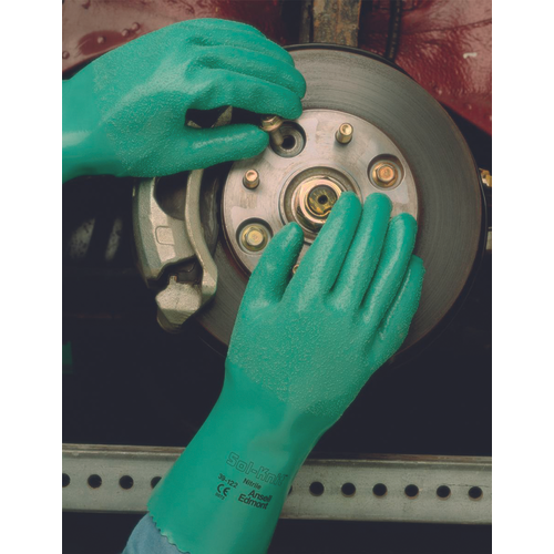 • zesílené nitrilové rukavice máčené v bavlně • drsný povrch, chrání před chemikáliemi • splňují požadavky FDA na manipulaci s potravinami • anatomický design: zakřivené, předem prohnuté prsty a palec otočené směrem k oku • dobrá obratnost, jistý úchop ve vlhkém i suchém prostředí • antistatické • délka: 310 mm
