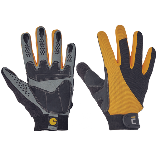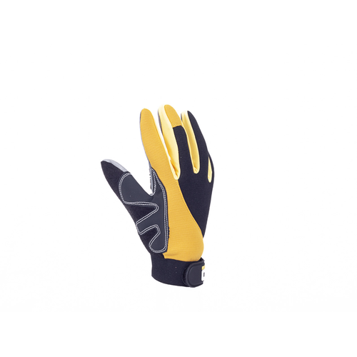 • rukavice šité ze syntetického materiálu s vlastnostmi jemné štípané usně • s protiskluzovými potisky na prstech • zesílenou úchopovou plochou v dlani • jemnou nylonovou tkaninou na bocích prstů zajišťující snadnou pohyblivost • nastavitelná manžeta na suchý zip