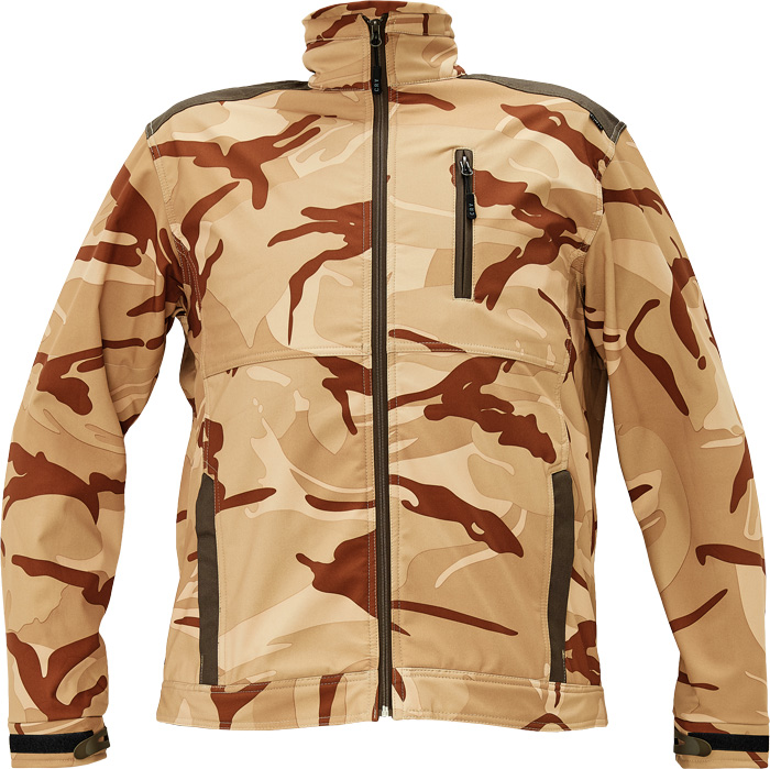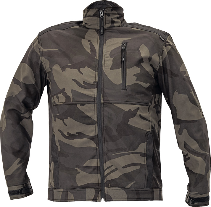 • pánská softshellová bunda se stojáčkem • zesílená ramena OXFORD 600 D • 2 postranní kapsy na zip • 1 náprsní kapsa • nastavitelná šířka manžety rukávů díky suchému zipu • atraktivní design kamufláž