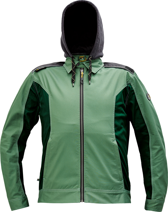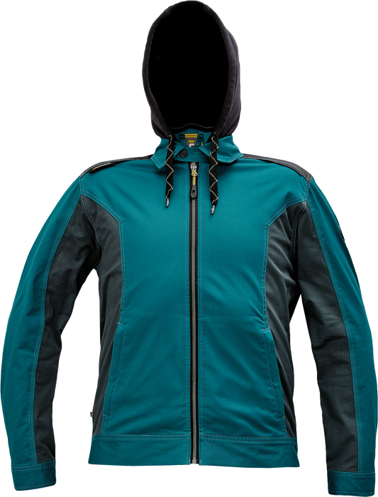 pánská pracovní bunda, elastický inovativní materiál TRIFIBETEX®, ergonomický střih, odnímatelná kapuce, zesílená oblast ramen z materiálu Oxford, 2 boční kapsy, 1 vnitřní kapsa na telefon, reflektivní prvky v barevném odstínu