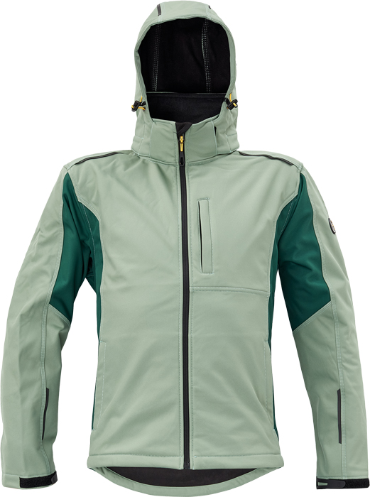 pánská softshellová bunda, ergonomický střih, odnímatelná kapuce, 3 přední kapsy na zip, 2 vnitřní kapsy, reflektivní prvky v barevném odstínu, nastavitelná šíře rukávu plastovým suchým zipem, stahovací šňůrka s brzdičkou ve spodním obvodu