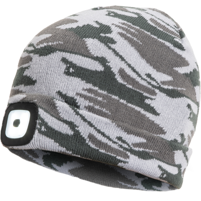 pletená čepice s integrovanou LED lampou; 3 funkce svícení; LED lampu lze vyjmout a dobít přes USB konektor; nabíjecí výkon: 0,5W; nabíjecí napětí: 5V; nabíjecí proud: 200 mAh; jmenovitý výkon: 1W