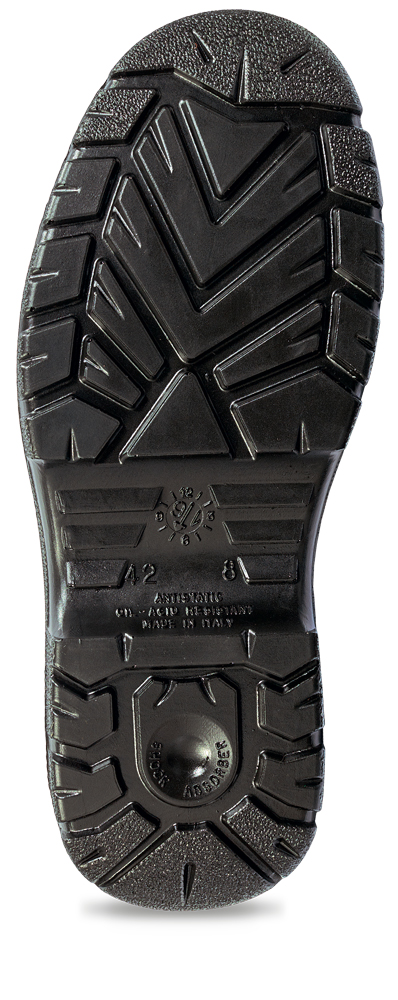 Bezpečnostní polobotka s ocelovou tužinkou, stélkou odolnou propíchnutí, antistatickou a protiskluzovou PU/PU podrážkou rezistentní pohonným hmotám, absorpcí energie v patě a svrškem z prodyšné kůže.