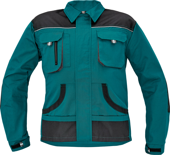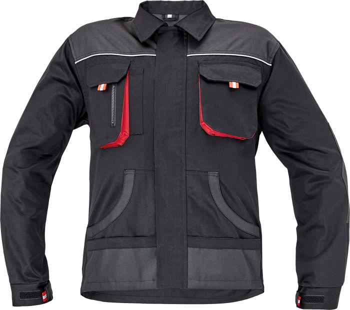 pánská bavlněná pracovní bunda; zapínaní na zip kryté légou; 2 náprsní kapsy s klopou na suchý zip; 2 multifunkční postranní kapsy v pase; polyester Oxford zesílení v loketních částech a ramenou.