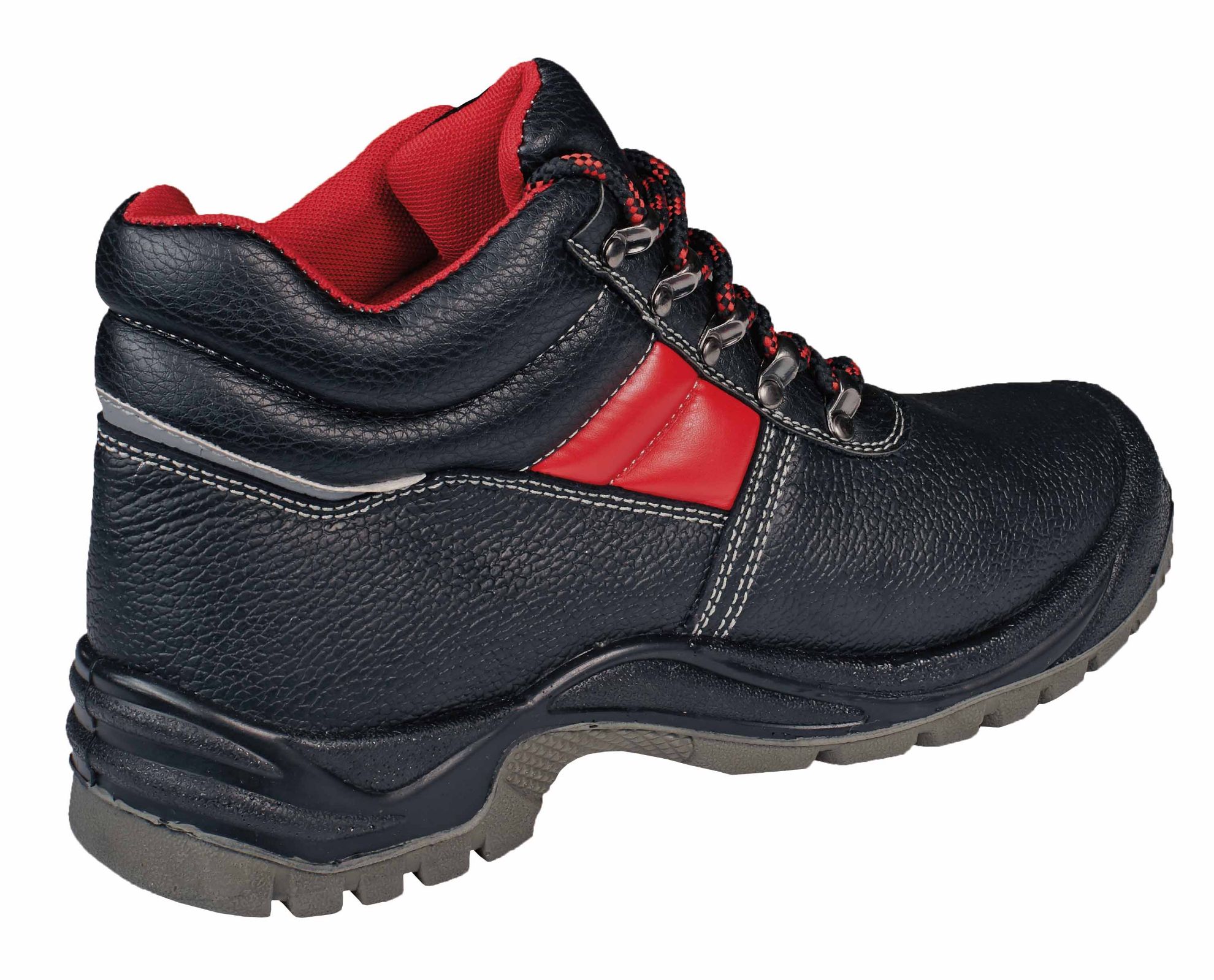 Bezpečnostní kotníková obuv s ocelovou tužinkou, stélkou proti propíchnutí, PU/PU podrážkou rezistentní olejům. Svršek – reliéfní štípaná kůže. Stříbrné reflexní doplňky.