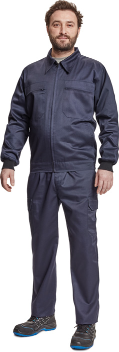 pánská pracovní bunda, 2 náprsní kapsy na zip, 2 postranní kapsy, elastické manžety a spodní lem; 20 % bavlna + 80 % polyester