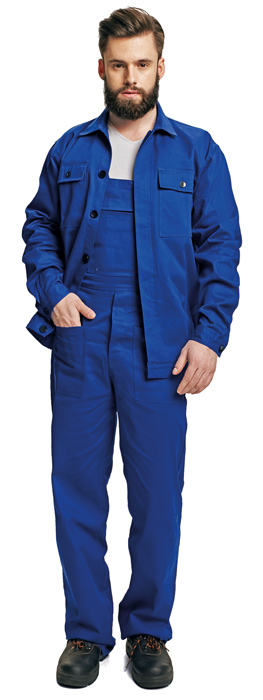 • montérková bunda a kalhoty s laclem v základním provedení • bunda má zapínání na knoflíky a 2 kapsy • kalhoty s laclem mají 4 kapsy, na boku kapsa na metr