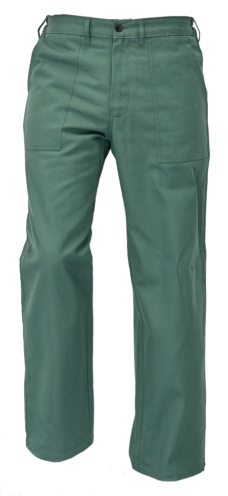 • pánské montérkvé kalhoty základního třihu se dvěma bočními kapsami a dvěma kapsami na zadním díle