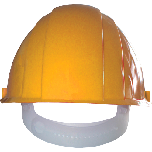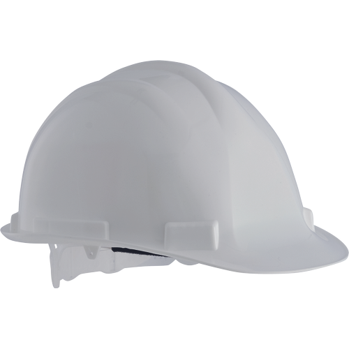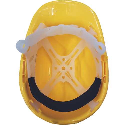 Ochranná přilba vyrobená z materiálů polypropylen/ABS, vybavena otvorem pro mušlové chrániče sluchu, 4-bodovým hlavovým křížem.