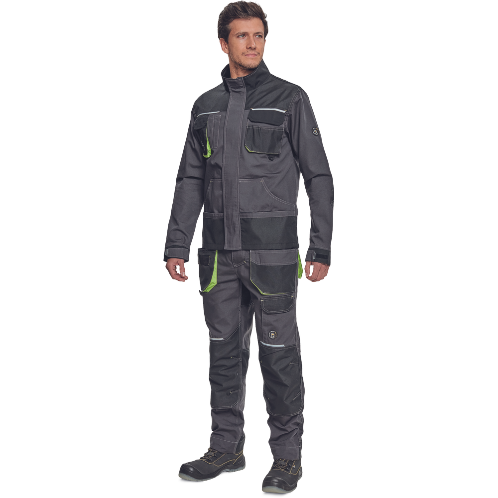 • pánská pracovní bunda • zapínání kryté légou na suchý zip • 2 prední kapsy • 2 náprsní kapsy • 1 náprsní kapsa na mobilní telefon • Oxford 600D zesílení loktu • reflexní prvky • kontrastní prošití