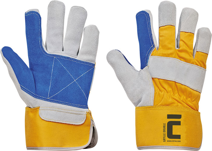 Kombinovaná rukavice z hovězí štípenky a bavlněné tkaniny se zesílením po celé dlani, palci a ukazováku. Pevná manžeta o délce 7 cm.