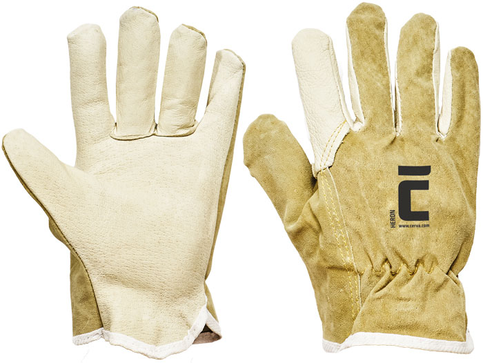 Celokožené rukavice z vepřové lícovky v dlani a na prstech a vepřové štípenky na hřbetu.
