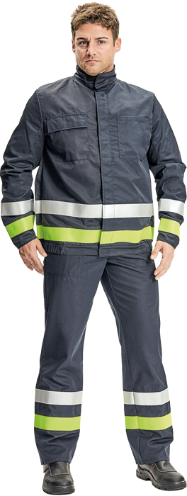 Antistatický ochranný odev nabízí ochranu pred teplem, ohnem a elektrickým obloukem. Poskytuje vhodnou ochranu pred úcinky elektrického oblouku vzniklého, pri jednofázovém zkratu (7 000 A) v síti nízkého napetí (max. 400 V, strídavé napetí 50 Hz). Jeho materiál má antistatické (elektrostaticky disipativní) vlastnosti, a z tohoto duvodu ho lze používat ve výbušných prostredích a v blízkosti horlavých materiálu. Hodí se pro pracovníky vystavené teplu a ohni. Ochranný odev zajistí ochranu pred úcinky prímého ohne po dobu 4 sekund a pred úcinky tepla o intenzite 20 kW/m2 po dobu 7 sekund. Materiál je sám o sobe odolný vuci teplu a ohni, a praní tak na nej nemá žádný vliv. Zapínání bundy na cvoky s klopou na suchý zip; široké záhyby na zádech; 1-1 stříbrný pásek a HI-VIS žlutý reflexní pásek okolo těla a na rukávech; přední část a rukávy jsou vyrobeny z dvojité vrstvy materiálu; manžety na rukávech na suchý zip; elastická manžeta v pase