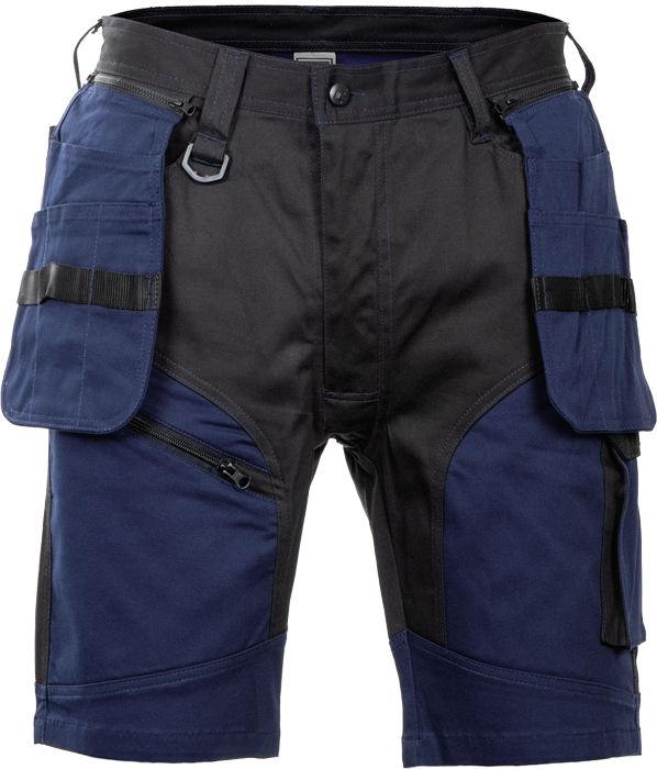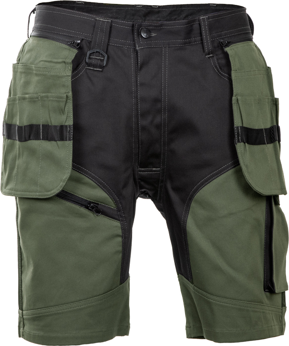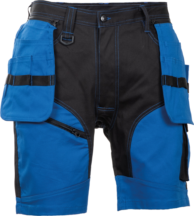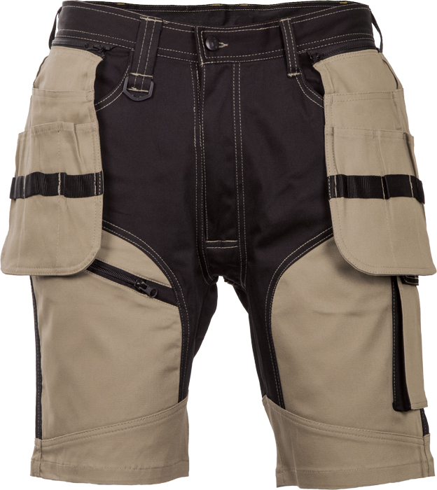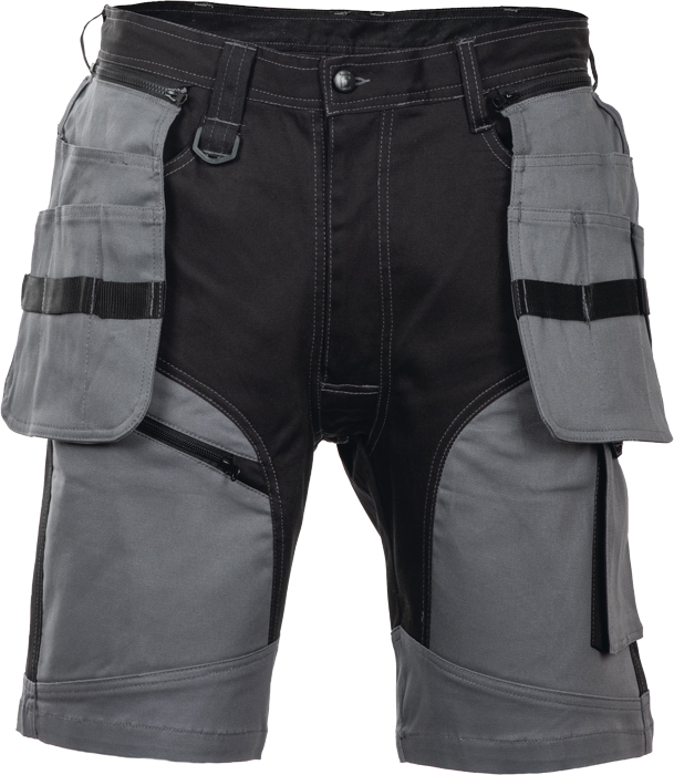 pánské pracovní šortky z elastického materiálu, 2 postranní kapsy, 2 vložitelné multifunkční kapsy na nářadí, "D" kroužek, 1 boční kapsa na nohavici s patkou, 1 kapsa na nohavici na zip, 2 nakládané zadní kapsy s patkou, dekorativní prošití
