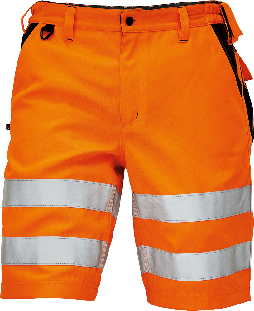 • pánské pracovní krťasy v hi-vis provedení s elastickám pasem • 2 postranní kapsy a 2 kapsy s patkou na zadním díle • poutko na nářadí v kontrastní barvě • D kroužek pro přichycení identifikačníkarty • dekorativní prošití