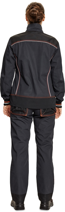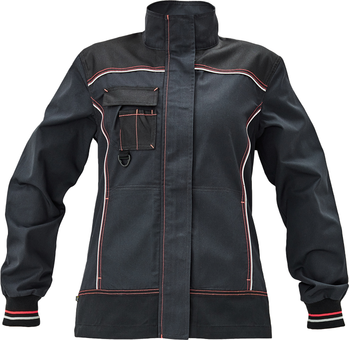 dámská pracovní bunda moderního střihu se stojáčkem; hluboké postranní kapsy; multifunkční náprsní kapsa; D kroužek pro přichycení; identifikační karty; zesílená oblast ramen; náplety na rukávech; prošití kontrastní nití v hi-vis barevném odstínu