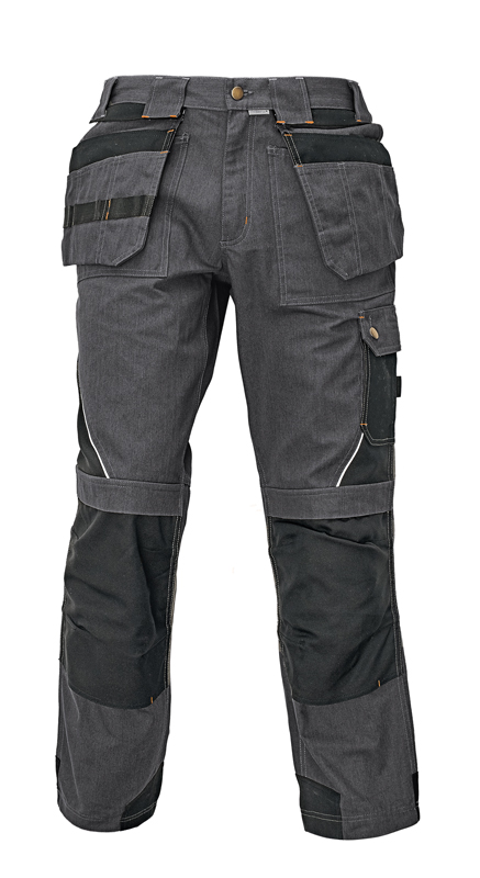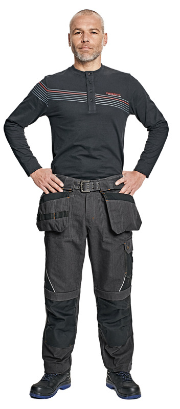 • pánské pracovní kalhoty do pasu, s odnímatelnými multifunkčními kapsami na předním díle • prostorné kapsy na možnost vkládání odnímatelných kapes • široká pasová poutka • postranní kapsa s poutkem na nářadí • velké nakládané kapsy s klopou na suchý zip na zadním díle • nákolenní kapsy ze zesíleného materiálu Oxford s možností vložení kolenních výztuh • zpevnění švů trojitým prošitím • znásobené prošití v namáhaných místech v kontrastní barvě • upravitelná délka nohavic • dekorativní paspule z reflektivního materiálu