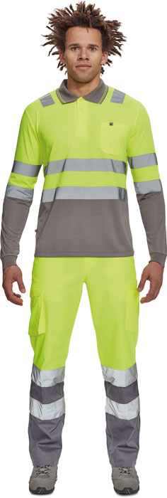 pánská Hi-Vis polokošile s dlouhým rukávem, retroreflexní pruhy přes ramena a v bocích, zapínání na 3 knoflíky, 1 náprsní kapsička, elastické lemy rukávů