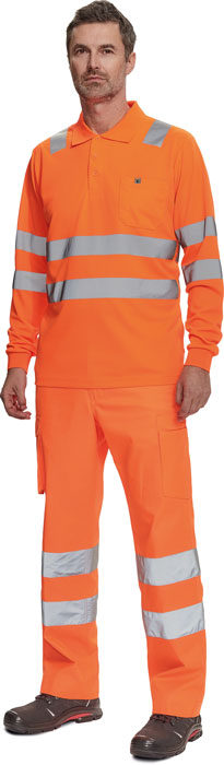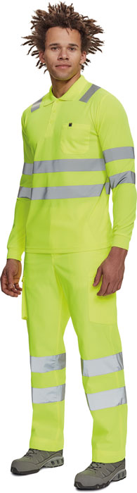 pánská full Hi-Vis polokošile s dlouhým rukávem, retroreflexní pruhy přes ramena a v bocích, zapínání na 3 knoflíky, 1 náprsní kapsička, elastické lemy rukávů