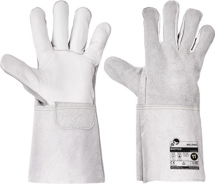 Rukavice z hovězí štípenky, buvolí lícovka na dlani pro zvýšení komfortu a lepší úchop, šité kevlarovou nití, svářecí kategorie B. EN 12477+A1
