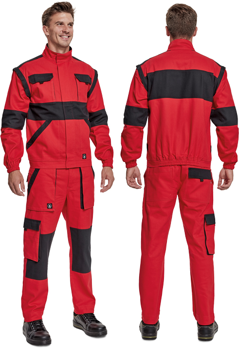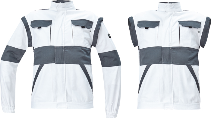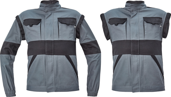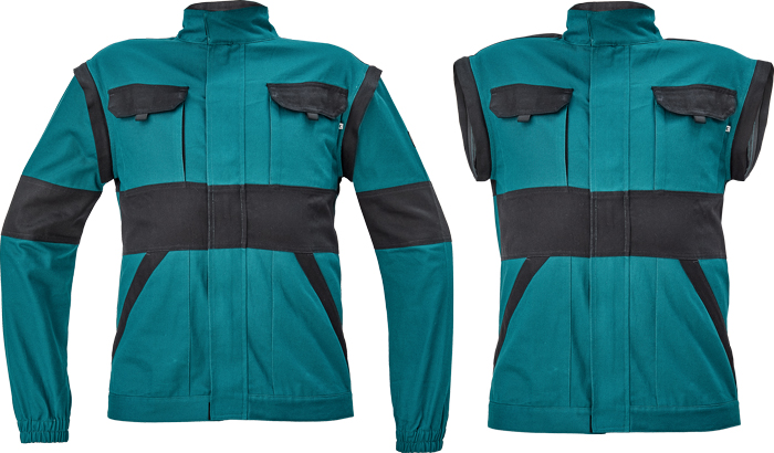 pánská pracovní bunda se zapínáním na zip krytým légou; odepínatelné rukávy; 2 přední kapsy, 2 náprsní kapsy; zesílení namáhaných míst loktů a ramen; pružné manžety rukávů a spodní obvod v pase.