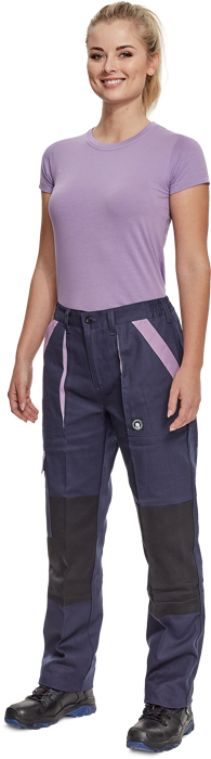 dámské pracovní kalhoty s elastickým pasem; 2 přední kapsy, 1 stehenní kapsa, 2 zadní kapsa; zesílená oblast kolen; nastavitelná délka nohavic.