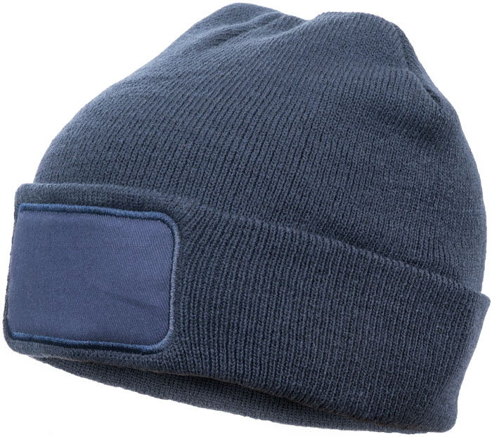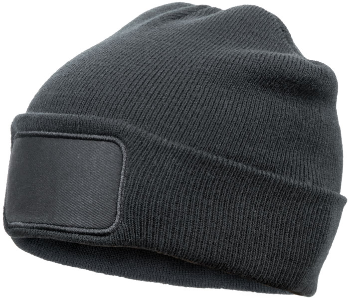 pletená zimní čepice s čelním štítkem pro výšivku nebo potisk.