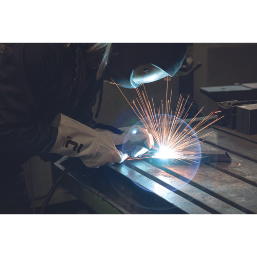 Celokožené rukavice z hovězí štípenky, s 15 cm dlouhou manžetou, bez podšívky. Certifikát: svářečské práce - typ B (varianta W – širší manžeta)