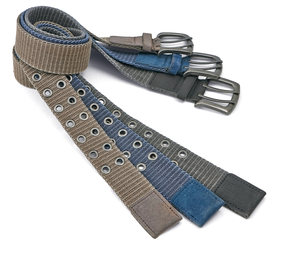Moderní pásek s dvouřadým zapínáním v atraktivním barevném provedení vintage, vhodný jako doplněk např. ke kalhotám CHENA a dalším typům montérkových či volnočasových kalhot.