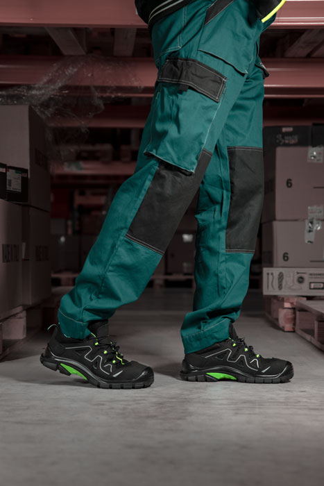 Moderní bezpečnostní sandály s kompozitní stélkou proti propichu a kompozitní tužinkou ve špici, která chrání před stlačením silou do 15 kN nebo pádem břemena o váze do 20kg z výšky 1m. Antistatická podešev vyrobena z kombinaci polyuretanu a velice odolné gumy garantuje nejenom komfort, ale i bezpečí díky protiskluzným vlastnostem podrážky, která je navíc rezistentní olejům a oděru. Svršek obuvi je vyrobený z přírodní kůže „NUBUCK“ a vnitřní podšívka z prodyšného polyesteru. Uzavíraní pomocí elastických tkaniček umožnuje ideálně přizpůsobit obuv k tvaru nohy. Reflexní prvky garantuji zvýšenou viditelnost uživatele. Tento model je vybaveny komfortní vnitřní stélkou, která díky gelové patě ještě lepe tlumí nárazy a přináší maximální pocit pohodli během práce. Tyhle boty vypadají jako sportovní obuv, ale při tom dokonale ochrání vaší nohy.