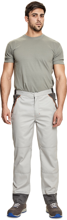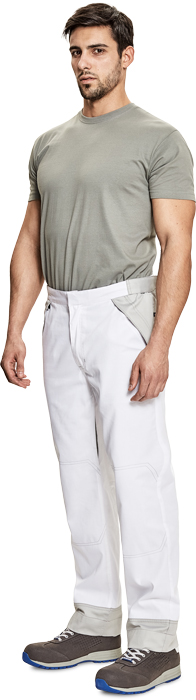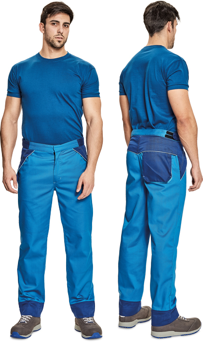 pánské lehké pracovní kalhoty vhodné pro industriální praní; příjemné nošení a odvětrání díky vsadkám ze síťoviny; kompletně krytá zapínání; nastavitelný obvod pasu díky suchým zipům po stranách; nastavitelná délka nohavic až o 5 cm; možnost vložení identifikačního čipu; dekorativní paspulky v kontrastní barvě.
