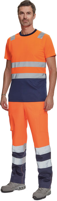 pánské Hi-Vis tričko s krátkým rukávem, kulatý průkrčník, retroreflexní pruhy přes ramena a v bocích