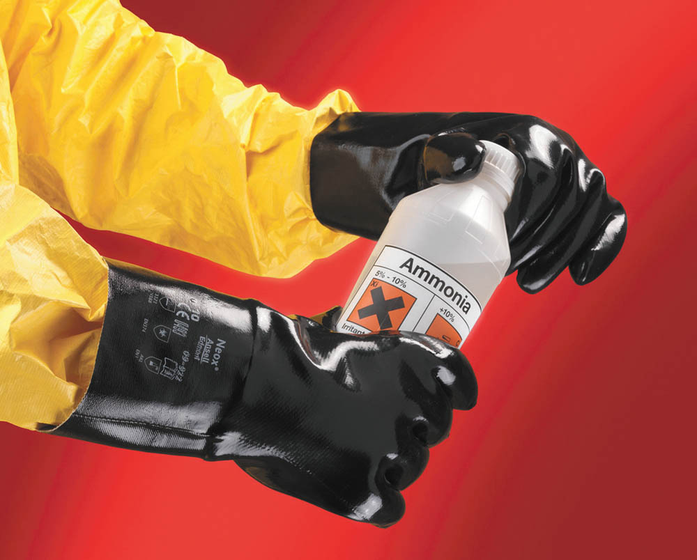Rukavice z prošívaného bavlněného úpletu, máčené v neoprenu, v celkových délkách 30,5 cm, 35,5 cm, 45,5 cm and 78,5 cm.