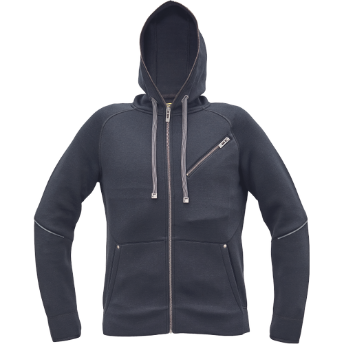 celopropínací pánská mikina s kapucí; zapínání na zip je prodlouženo až po špičku kapuce; obvod kapuce lze upravit pomocí vložené tkanice; 2 postranní kapsy, 1 náprsní kapsa na zip; reflexní detaily.