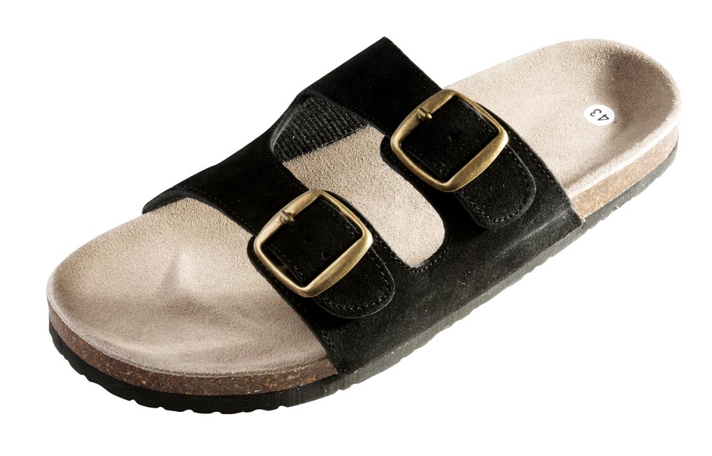 Korkové pantofle s podrážkou z pěnové pryže a koženým svrškem.
