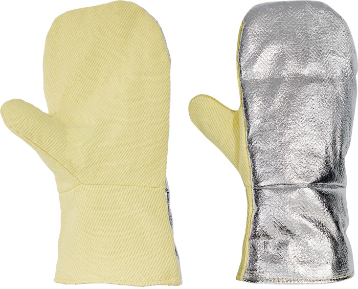 Palcové dvouvrstvé rukavice z materiálu aramid (600 g/m2), s pohliníkovaným hřbetem, ochranou před sálavým teplem, taveninou a kontaktním teplem do 350 °C, krátkodobě i do 500 °C.