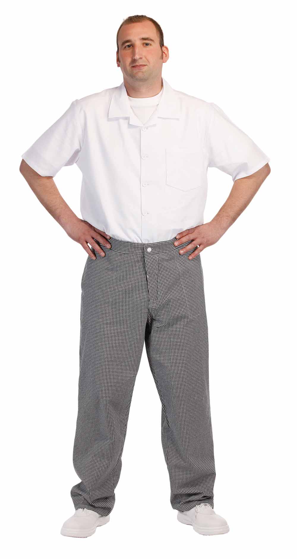• řeznické kalhoty • pas, polohovatelný na knoflíky • 2 přední klínové a 1 zadní kapsa