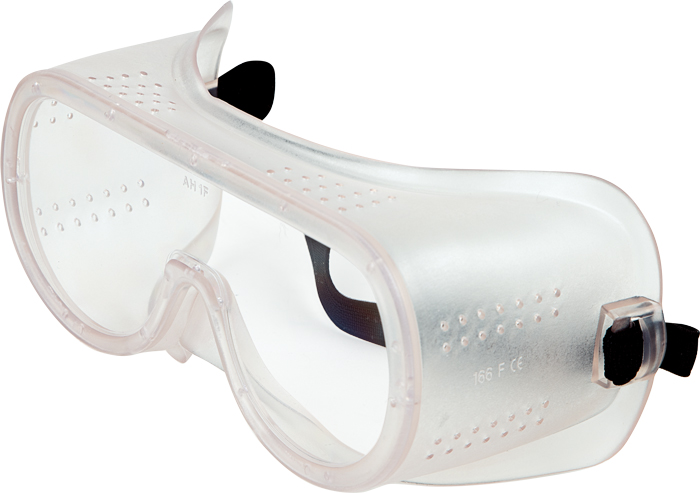 Ochranné přímo větrané brýle s plochým PC zorníkem tř. 1F a měkkou plastovou lícnicí.