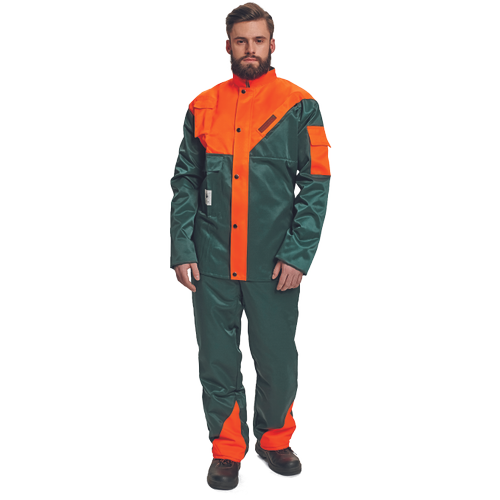 • pánská protipořezová bunda se stojáčkem s vnitřním fleecem • levá náprsní kapsa na zip • pravá kapsa s klopou na telefon • zapínaní na zip kryté légou s druky • na levém rukávu malá kapsa • rukávy s vnitřními elastickými manžetami • odvětrání v podpaží a zadní části
