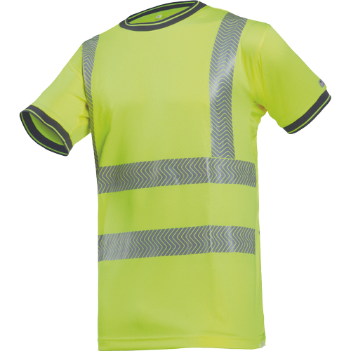 HI-VIS tričko s krátkým rukávem; ventilační síťovina v podpaží; reflexní tištěné pruhy; anti mikrobiologický materiál.