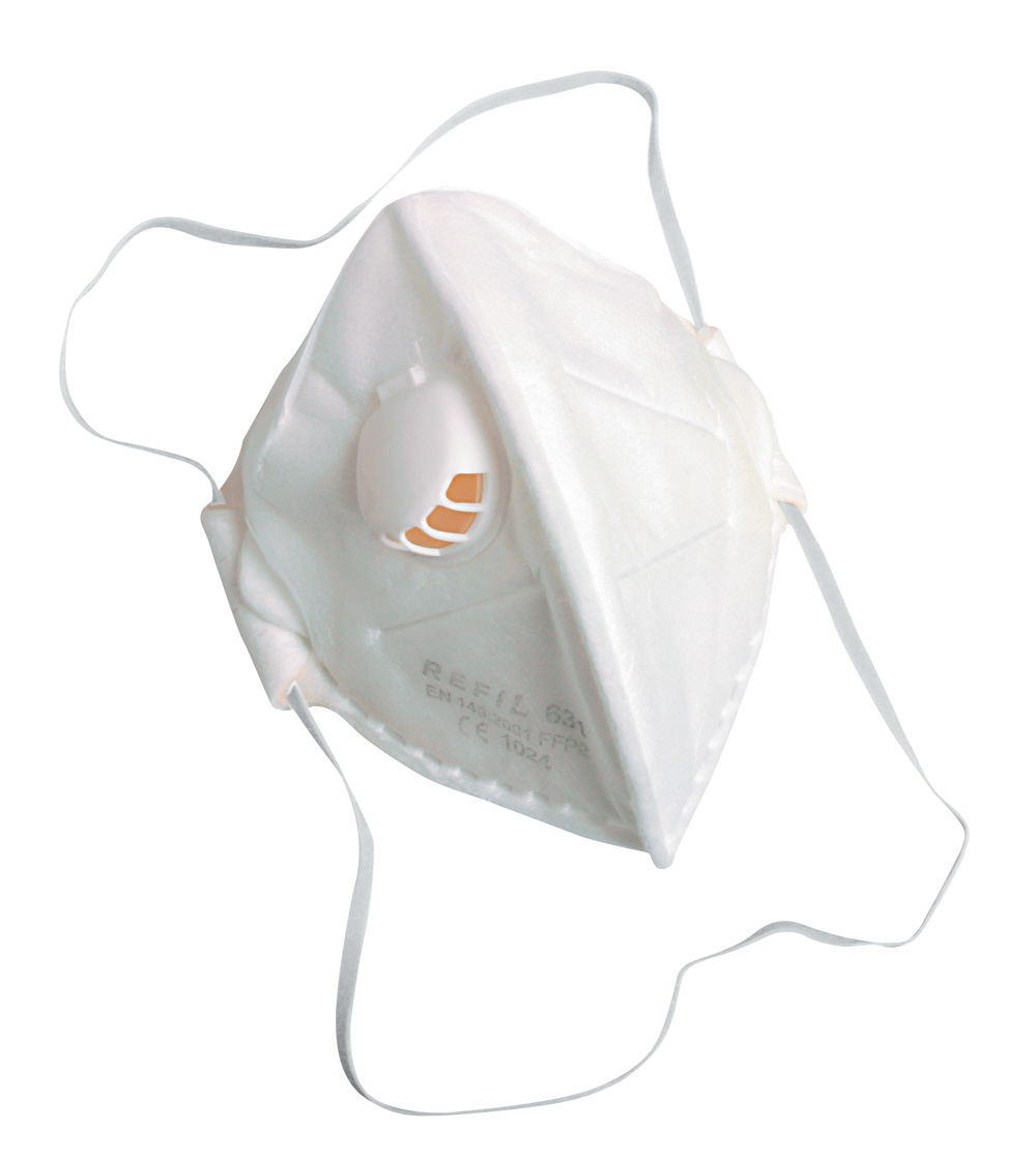 Skládací respirátor s výdechovým ventilem do 12x NPK/PEL, proti pevným částicím a kapalným aerosolům, FFP2 NR.