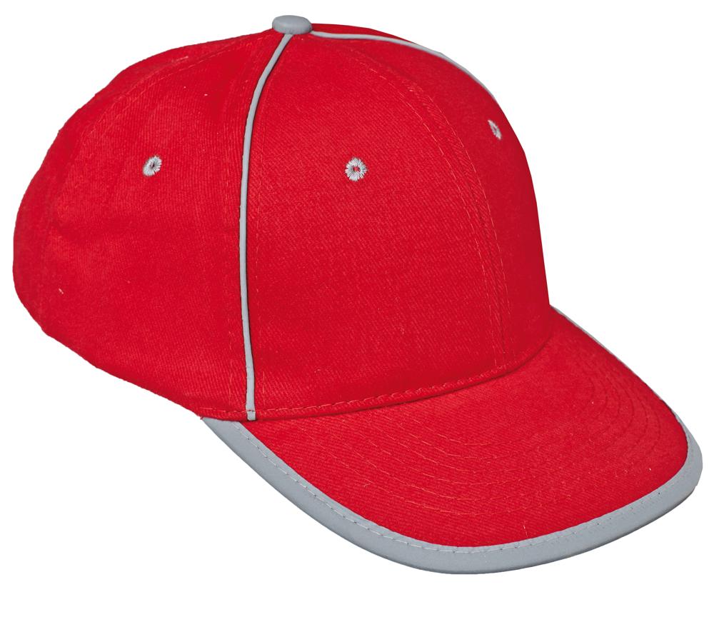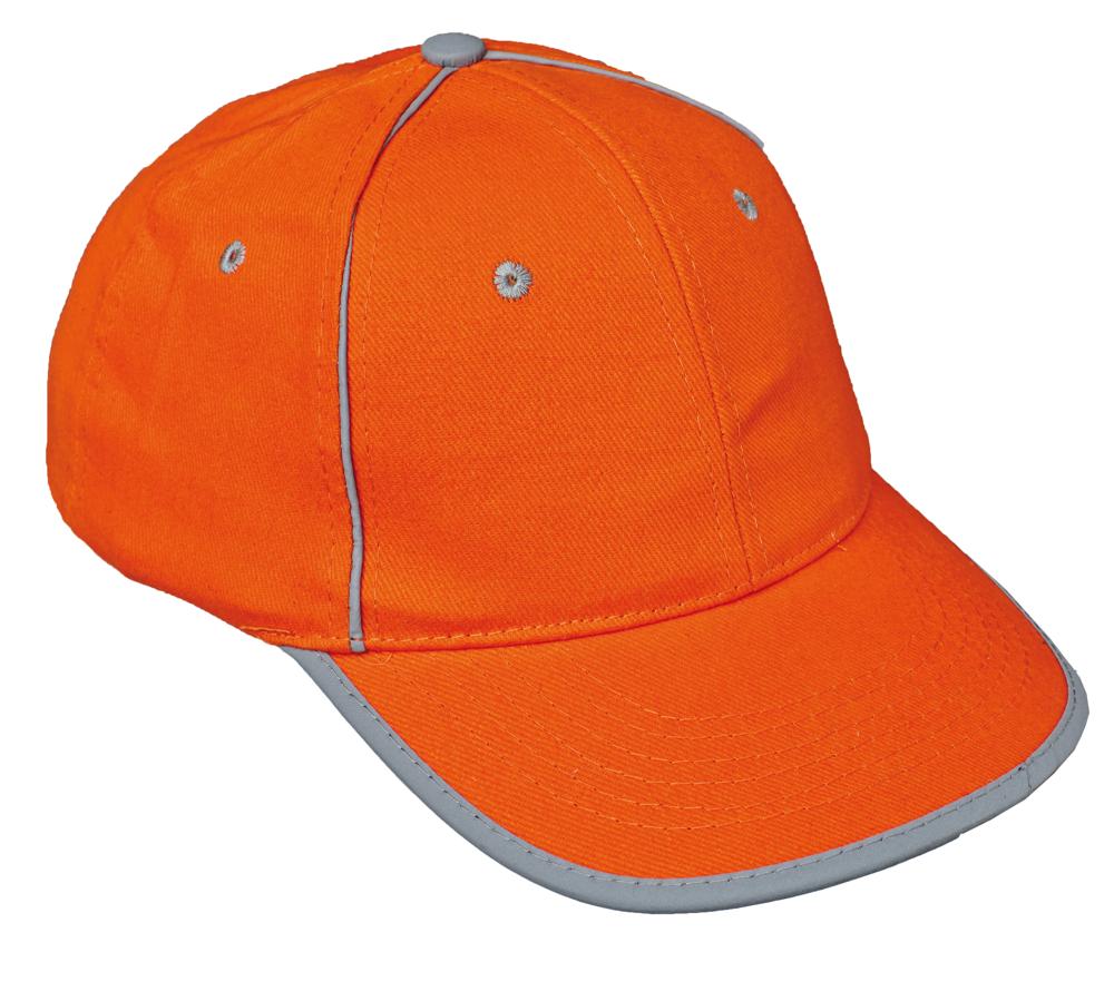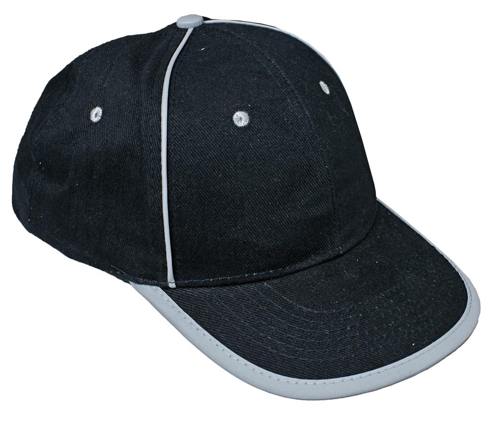 Čepice baseballového typu s reflexními doplňky a regulací velikosti pomocí suchého zipu.