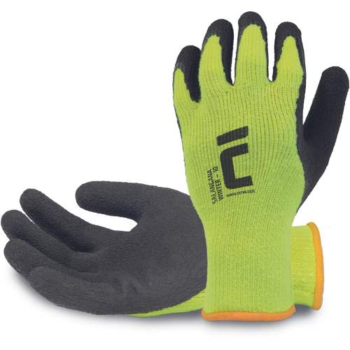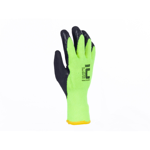 • zateplené bezešvé pletené rukavice ze syntetické příze s vrstvou pěnového latexu v dlani a na prstech • pružný náplet na zápěstí