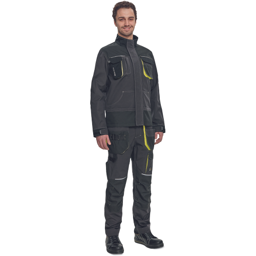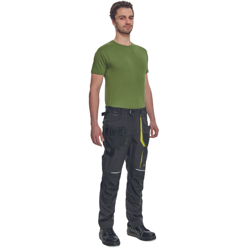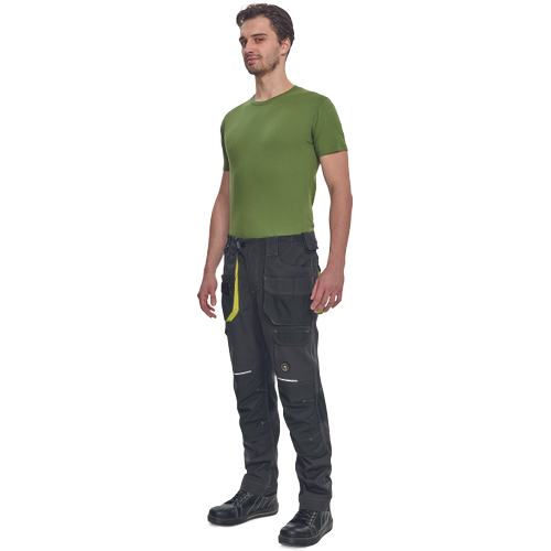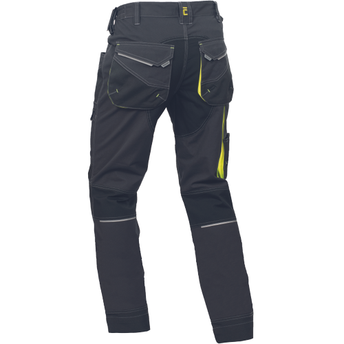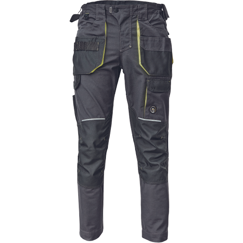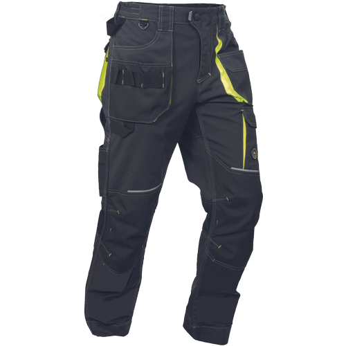 pánské pracovní kalhoty s pružným pasem a multifunkčními kapsami; Oxford 600D zesílení kolenních kapes pro vkládání ochranných nákoleníků; odolné trojité prošití nohavic a sedu; reflexní prvky; nastavitelná délka nohavic.