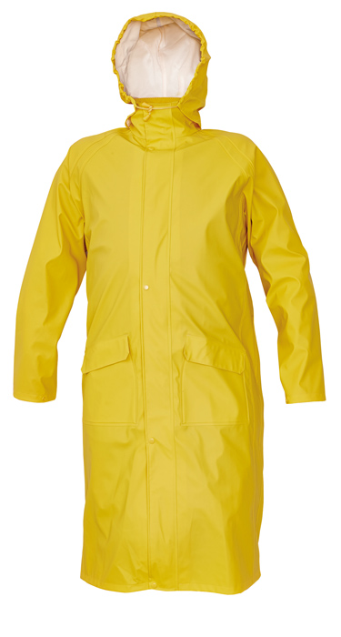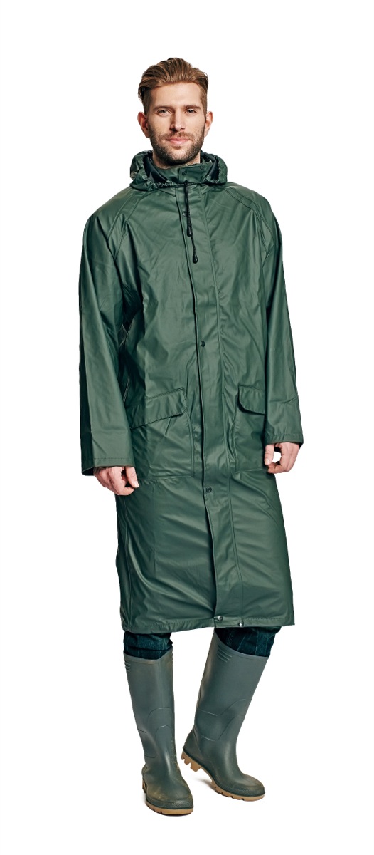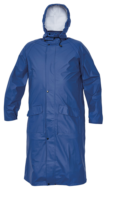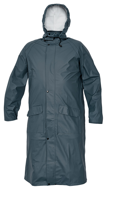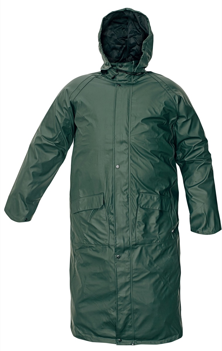 • nepromokavý a větruodolný prodloužený plášť s kapucí v límci • délka 120 cm • obvod kapuce lze stáhnout na tkaničku • dvě přední kapsy kryté légami s reflexní paspulí pro zvýšení viditelno • spodní lem rukávů lze polohovat drukem