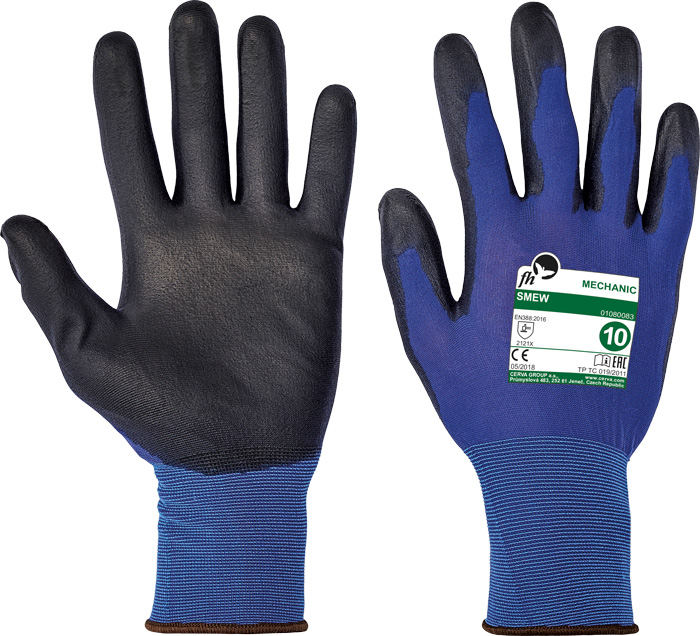 Ultratenké, lehké a prodyšné nylonové rukavice máčené v polyuretanu, ergonomie, vysoký cit v prstech.