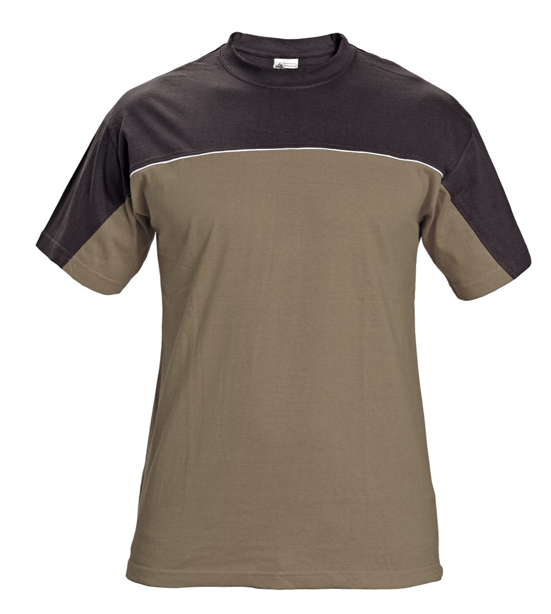 • kvalitní dvoubarevné pracovní tričko s krátkým rukávem • střední lem průkrčníku ze žebrového úpletu s 5% podílem elastanu