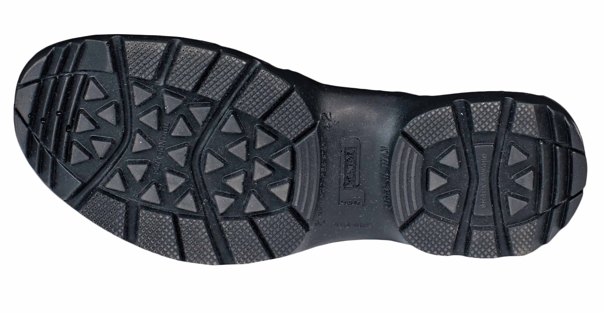 Pracovní obuv bez tužinky, s antistatickou a protiskluzovou PU/PU podrážkou rezistentní kyselinám a olejům, absorpcí energie v patě, voděodolným svrškem z prodyšné kůže a reflexními komponenty pro zvýšení viditelnosti.