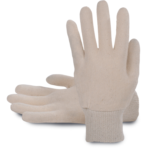 100% cotton glove. Ambidextrous. Knit wrist. Weight: 20 gr/pair.