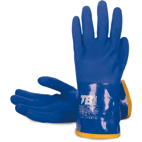 • modrá PVC trojitě máčená rukavice • žlutá akrylová podšívka • tloušťka: 1,5 mm • celková délka: 30 cm